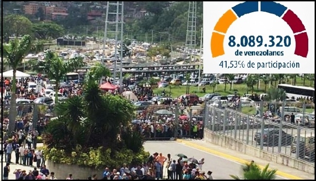 Αξιοσημείωτο είναι πως παρά την αποχή της αντιπολίτευσης η συμμετοχή του κόσμου στην εκλογική διαδικασία άγγιξε το 41,5% και έφτασε τις 8.089.320 ψήφους. Οι 8.089.000 ψήφοι σε καθεστώς πόλωσης είναι ψήφοι καθαρής υποστήριξης του Μαδούρο. Αν σκεφτούμε πως στις εκλογές του Απριλίου 2013, με ποσοστό συμμετοχής το 79,83%, το προβάδισμα στο Νικολάς Μαδούρο δόθηκε με 7.505.338 ψήφους έναντι 7.270.403 ψήφων υπέρ του υποψήφιου της αντιπολίτευσης, Ενρίκε Καπρίλες τότε το αποτέλεσμα της μάχης που δόθηκε με τη συσπείρωση 8.089.320 Βενεζουελάνων, εφτακοσίων χιλιάδων περισσότερους από το 2013, δείχνει πως η μπολιβαριανή επανάσταση στη Βενεζουέλα αντέχει.