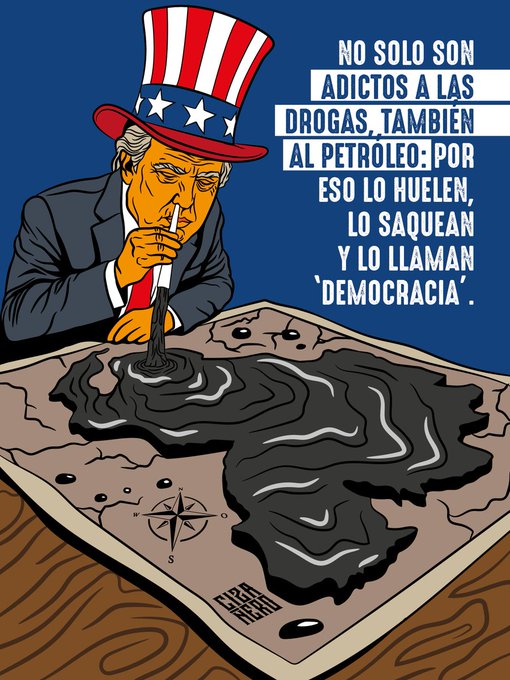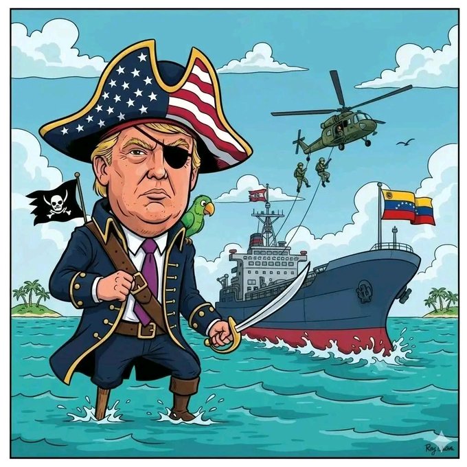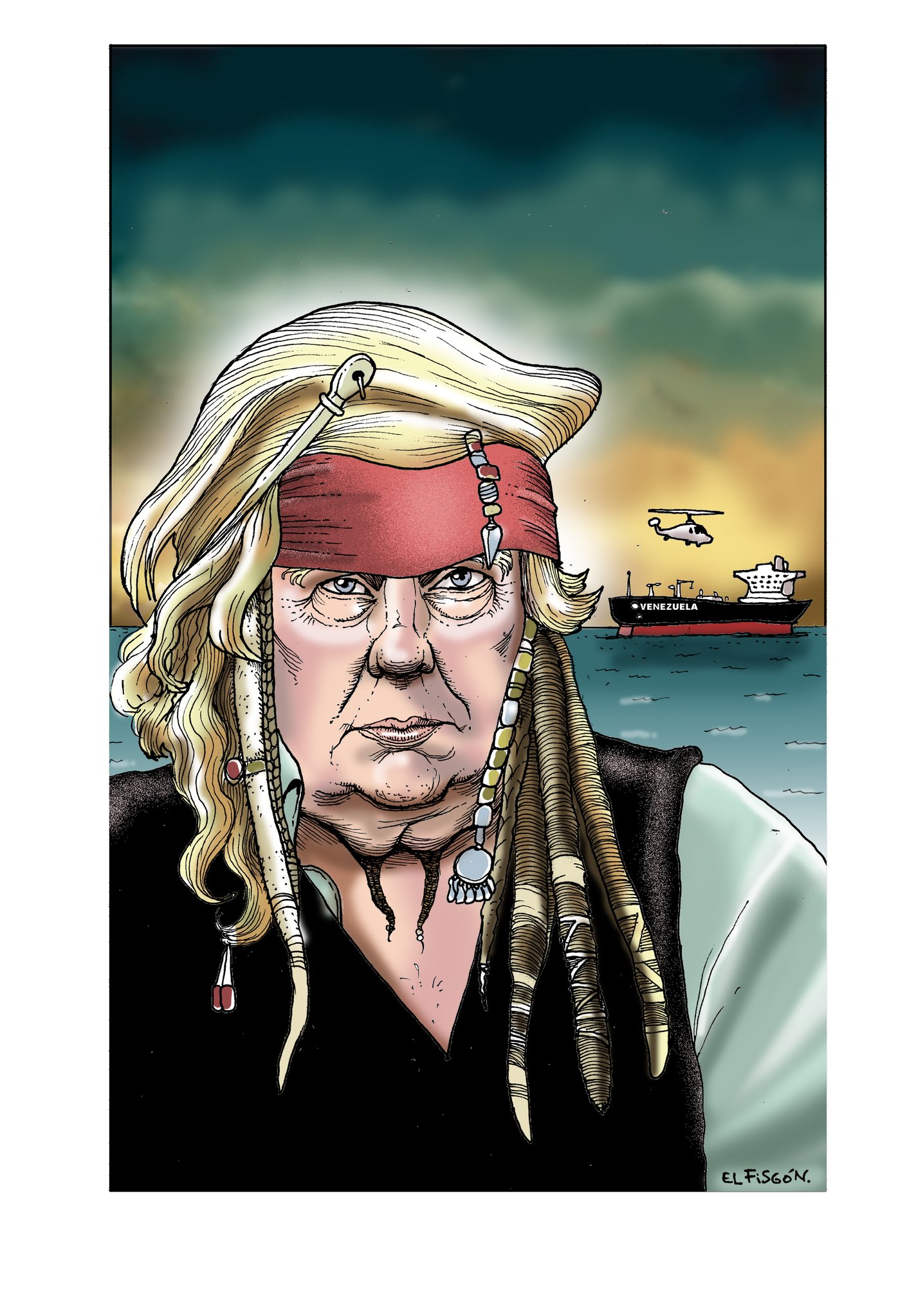 Δεν χρειάστηκαν παρά λίγες ώρες μετά την κατάληψη του βενεζολάνικου τάνκερ από το αμερικανικό ναυτικό για να κατακλυστεί το διαδίκτυο από σκίτσα που χλευάζουν τον Τραμπ. Δεκάδες σκιτσογράφοι από την Λατινική Αμερική εμφανίζουν τον αμερικανό πρόεδρο ως πειρατή της Καραϊβικής ξεσκεπάζοντας με αυτό τον τρόπο τον παράνομο τρόπο με τον οποίο λειτουργεί η Ουάσιγκτον σε βάρος του λαού και της κυβέρνησης της Βενεζουέλας αλλά και του διεθνούς δικαίου.