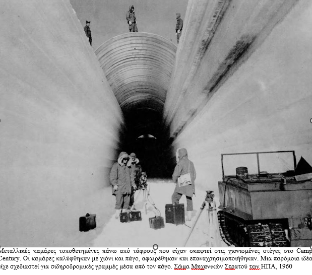 Ο Στρατός των ΗΠΑ κατασκεύασε το Camp Century, μια πυρηνική βάση, μέσα στο στρώμα πάγου σκάβοντας βαθιά χαρακώματα και στη συνέχεια καλύπτοντάς τα με χιόνι. Η βάση φιλοξενούσε 200 άνδρες σε αποθήκες που θερμαίνονταν στους 72 βαθμούς Φαρενάιτ (22 βαθμούς Κελσίου). Ήταν το κέντρο της έρευνας του Στρατού των ΗΠΑ στο χιόνι και τον πάγο και έγινε μια υπενθύμιση στην ΕΣΣΔ ότι ο αμερικανικός στρατός μπορούσε να επιχειρεί κατά βούληση στην Αρκτική.