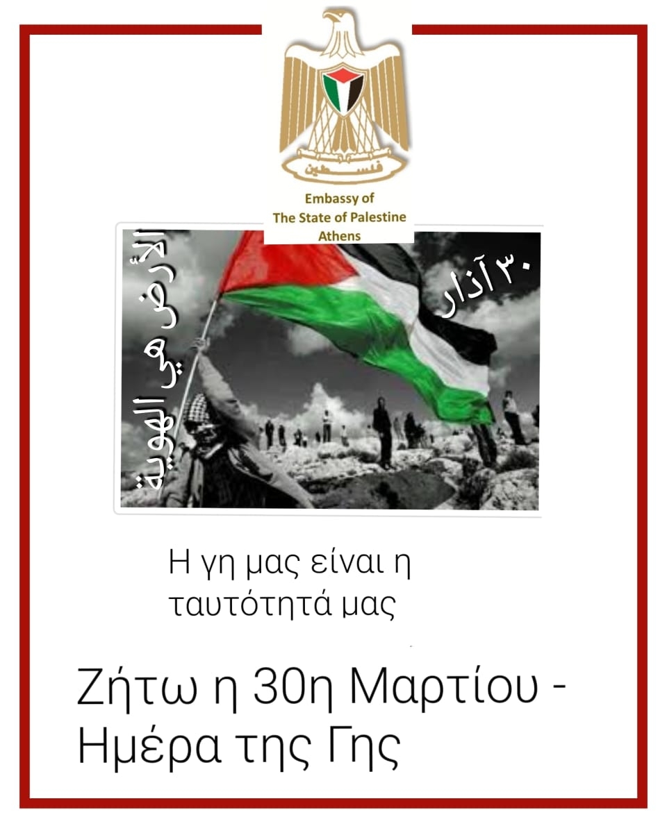 Στις 30 Μαρτίου κάθε χρόνο γιορτάζουμε την ημέρα της Παλαιστινιακής Γης. Φέτος, εορτάζουμε την 45η επέτειο και τιμούμε όλους εκείνους που έχουν αφιερώσει τη ζωή τους στον αγώνα κατά των παραβιάσεων των ανθρωπίνων δικαιωμάτων, της κατοχής και της αδικίας.