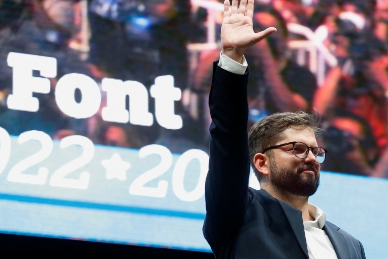 Στην πρώτη του πολιτική ομιλία ο καινούργιος εκλεγμένος πρόεδρος χαιρέτησε στα μαπουντουνγκούν (mapudungún), τη γλώσσα των μαπούτσε. Μίλησε για ελπίδα, ευθύνη, διάλογο, δικαιώματα των γυναικών και των σεξουαλικών διαφορετικοτήτων και για τους ιθαγενείς πληθυσμούς. Μίλησε επίσης και για προστασία του περιβάλλοντος και απέρριψε το σχέδιο εξορύξεων της εταιρείας Dominga στην έρημο Ατακάμα, που έχει προκαλέσει τεράστιες αντιδράσεις.