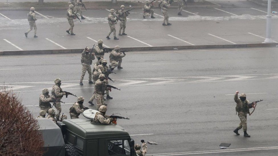 Επίσης η ενεργοποίηση του άρθρου του ΟΣΣΑ περί συλλογικής βοήθειας προς κράτος-μέλος σε περίπτωση επίθεσης έξωθεν (το αντίστοιχο Άρθρο 5 του Καταστατικού του ΝΑΤΟ ουσιαστικά δεν έχει ενεργοποιηθεί ποτέ ιστορικά) έγινε με απόλυτα σύννομο τρόπο και μάλιστα για αυτό ενημερώθηκαν άμεσα η Γραμματεία και το Συμβούλιο Ασφαλείας του ΟΗΕ. Ο Τοκάγεφ, ως άριστος γνώστης του Διεθνούς Δικαίου κινήθηκε αστραπιαία και με απολύτως σύννομο, με βάση τις αρχές του Διεθνούς Δικαίου, τρόπο. Για αυτό και πέραν των επικοινωνιακών φληναφημάτων του δυτικού συστημικού Τύπου περί «ρωσικών τανκ στους δρόμους των πόλεων του Καζαχστάν» δεν είδαμε κάποια ιδιαίτερη αντίδραση. (Το πόσο γελοίος είναι ο ισχυρισμός περί παρουσίας τανκ στις πόλεις, φαίνεται από έναν στοιχειώδη έλεγχο των χιλιομετρικών αποστάσεων που θα έπρεπε να διανύσουν τα ρωσικά τεθωρακισμένα με ταχύτητα… υπερηχητικών αεροπλάνων, ώστε να φτάσουν π.χ. στην Αλματί, επίκεντρο των συγκρούσεων).