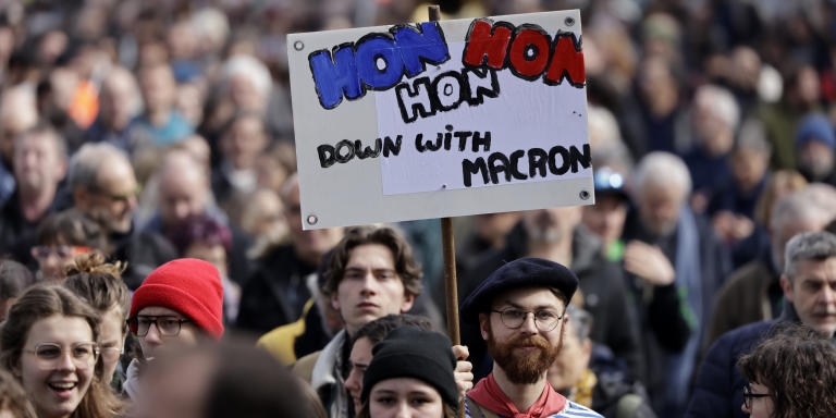 Ίσως ποτέ, δεν έχει ξαναϋπάρξει στη Γαλλία Πρόεδρος της Δημοκρατίας, που για να ξεφύγει από την αμηχανία, απαξιώνει δημοσίως την οικονομική υπογραφή της Γαλλίας. Ψεύδεται ασύστολα αφού η μεταρρύθμιση θα αποφέρει μόνο 400 εκατομμύρια ευρώ για το συνταξιοδοτικό σύστημα το 2023, από έναν προϋπολογισμό συντάξεων 350 δισεκατομμυρίων ευρώ (και πλεόνασμα το 2022), ενώ η κυβέρνηση έχει χορηγήσει 7,5 δισεκατομμύρια ευρώ σε φοροελαφρύνσεις στις επιχειρήσεις, και έχει προγραμματίσει να διπλασιάσει το ποσό το 2024. Και αυτό συμβαίνει Τη στιγμή που “οι αγορές” κλονίζονται από μια πραγματική τραπεζική κρίση και ο Υπουργός Οικονομίας χάνει την ανάσα του προσπαθώντας να καθησυχάσει τον κόσμο για την κατάσταση των γαλλικών τραπεζών.