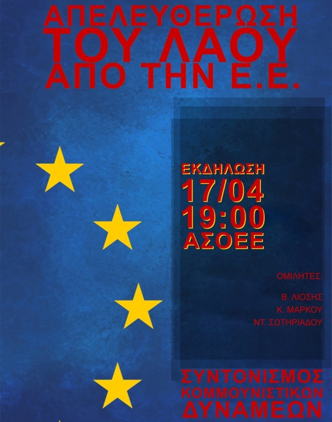 Ομιλητές: Βασίλης Λιόσης, Κώστας Μάρκου και Ντίνα Σωτηριάδου.