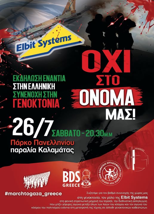 Συζητάμε για τον βαθμό συνενοχής της χώρας μας στη γενοκτονία, τον ρόλο της Elbit Systems στη φονική στρατιωτική μηχανή του Ισραήλ, την διεθνιστική αλληλεγγύη που χτίζει γέφυρες αγώνα μεταξύ όλων των λαών του κόσμου και τον αγώνα του κόσμου του πολιτισμού ενάντια στη μετατροπή της τέχνης σε άλλοθι γενοκτονικών καθεστώτων.