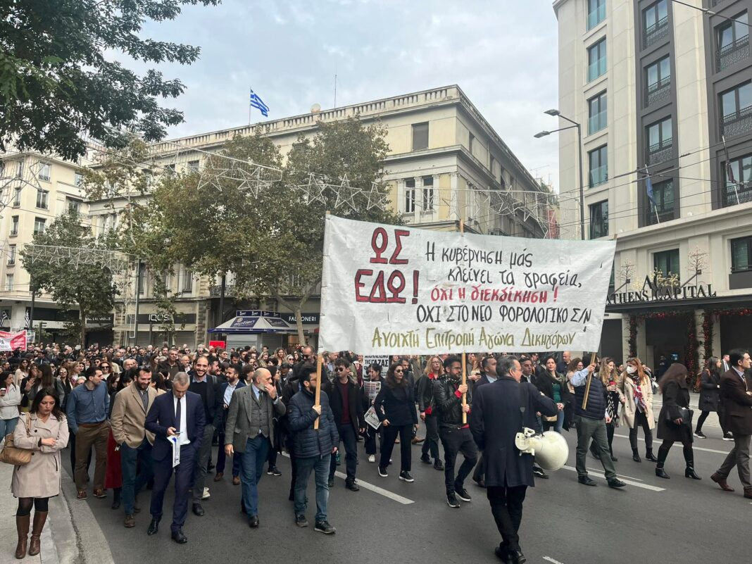 Επί μια δεκαετία και πλέον επιχειρείται η βίαιη αναδιάρθρωση του δικηγορικού κόσμου. Η κυβέρνηση της Νέας Δημοκρατίας προωθεί ρυθμίσεις που έχουν στόχο, αφενός όσες και όσοι ζουν από τη δουλειά του γραφείου τους, να το κλείσουν, αφετέρου όσες κι όσοι εργάζονται για άλλους, να έχουν όσο το δυνατόν λιγότερα δικαιώματα. Η ύλη και η δουλειά έχει ήδη συγκεντρωθεί και θα συνεχίσει να συγκεντρώνεται σε λίγους. Η πολιτική όλων των κυβερνήσεων που υπέγραψαν και εφάρμοσαν Μνημόνια με την Ευρωπαϊκή Ένωση και τους δανειστές αποσκοπεί στην εξόντωση των αυτοαπασχολούμενων, ώστε να προχωρήσει η συσσώρευση των κερδών. Η φορολογία μας, η ασφάλισή μας, οι υποχρεώσεις μας, φορολογικές, λογιστικές, ασφαλιστικές, συνεχώς αυξάνονται και γίνονται πιο περίπλοκες, ενώ παράλληλα το συνολικό κόστος ζωής εκτοξεύεται. Την ίδια στιγμή το πλαίσιο αμοιβών και συνθηκών εργασίας για όσους και όσες από εμάς είμαστε μισθωτοί/-ές και ασκούμενες/-οι παραμένει αρρύθμιστο, με αποτέλεσμα η δουλειά μας να είναι εξαντλητική και όχι απλά να μην πληρώνεται όπως της αξίζει, αλλά να μην πληρώνεται και με τρόπο που να επιτρέπει τη στοιχειώδη επιβίωση.