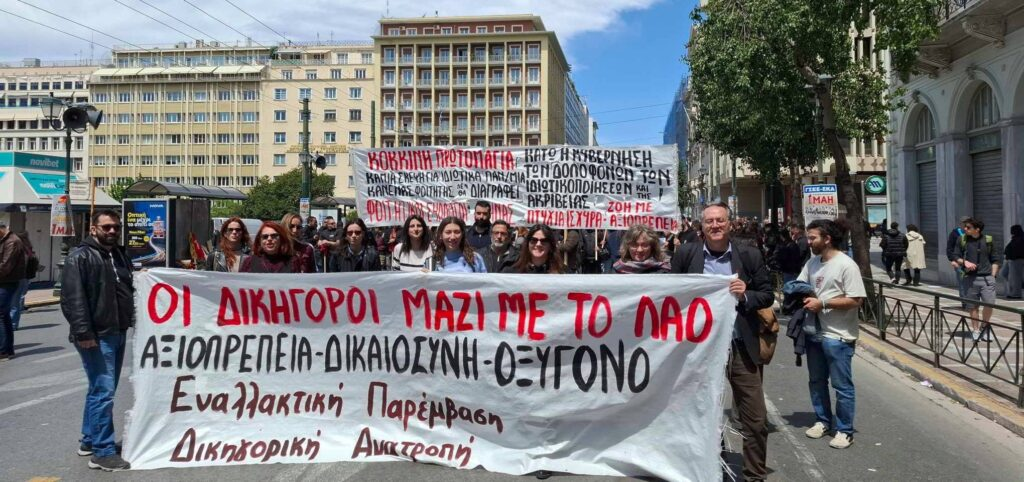 Σε μια εποχή έντονης αναξιοπιστίας του συστήματος απονομής της δικαιοσύνης, αλλά και μαζικής έκρηξης του κινήματος για δικαιοσύνη, όπως εκφράστηκε με τις τεράστιες συγκεντρώσεις για τα Τέμπη, ο ρόλος του/της δικηγόρου δεν είναι να νομιμοποιεί και να θωρακίζει το ιερατείο της εξουσίας, αλλά να υπερασπίζεται δικαιώματα και ελευθερίες για λογαριασμό και στο πλευρό της κοινωνίας. Γι’ αυτό και είναι κρίσιμο μετά τις επικείμενες εκλογές, ο Δικηγορικός Σύλλογος να μην είναι ένα ακόμη δεκανίκι αυτής της κυβέρνησης που επιχειρεί να ελέγξει με κάθε τρόπο τα θεσμικά όργανα του δικηγορικού σώματος.