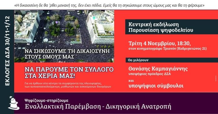 Με αυτό το σκεπτικό, συμμετέχουμε στις εκλογές του Δικηγορικού Συλλόγου, επιδιώκοντας να διοικηθεί ο Δικηγορικός Σύλλογος της Αθήνας για τα συμφέροντα της μεγάλη πλειοψηφίας των συναδέλφων και συναδελφισσών, με αυτούς τους στόχους και προς αυτή την κατεύθυνση, μέσα από συμμετοχικές διαδικασίες και γενικές συνελεύσεις, με τα μάτια στραμμένα στην κοινωνία.