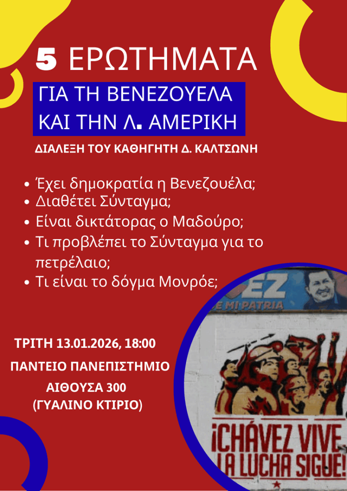Τρίτη 13/1/2026, 6μμ, Πάντειο Πανεπιστήμιο, αίθουσα 300 (γυάλινο κτίριο)
