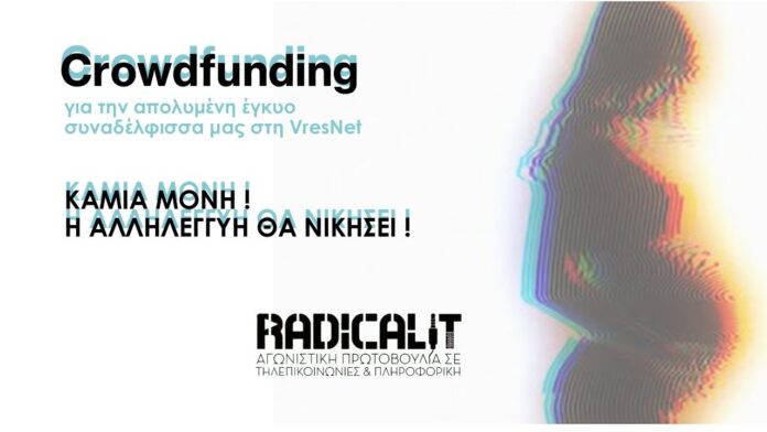 Ως Radical IT (σχήμα που παρεμβαίνει στο σωματείο Τηλεπικοινωνιών και Πληροφορικής) προχωρήσαμε στην δημιουργία Crowdfunding για την οικονομική στήριξη της συναδέλφισσας