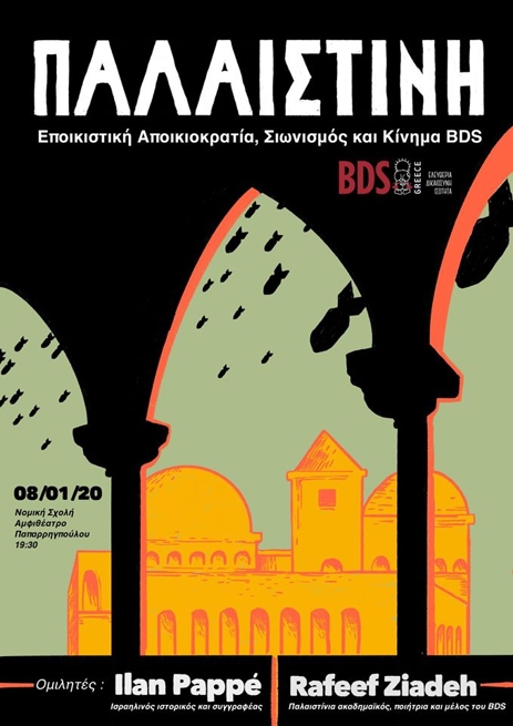 Έναν χρόνο μετά την ίδρυσή της, η Πρωτοβουλία BDSGreece διοργανώνει εκδήλωση με τίτλο «Παλαιστίνη: Eποικιστική Αποικιοκρατία, Σιωνισμός και το Κίνημα BDS» και ομιλητές τον ισραηλινό ιστορικό Ιλάν Παπέ και την ακαδημαϊκό και μέλος της παλαιστινιακής εθνικής επιτροπής BDS (BNC), Ραφίφ Ζιαντάχ.