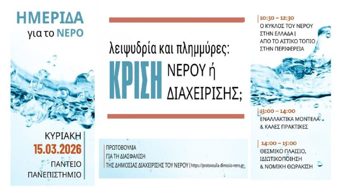 Την Κυριακή 15/3/2026 και ώρα 10:30, στο Πάντειο (αμφιθέατρο Σάκη Καράγιωργα Ι), συζητούμε για τις θεσμικές παρεμβάσεις, τα μέτρα και τα έργα που προωθούνται στο όνομα της κλιματικής κρίσης.