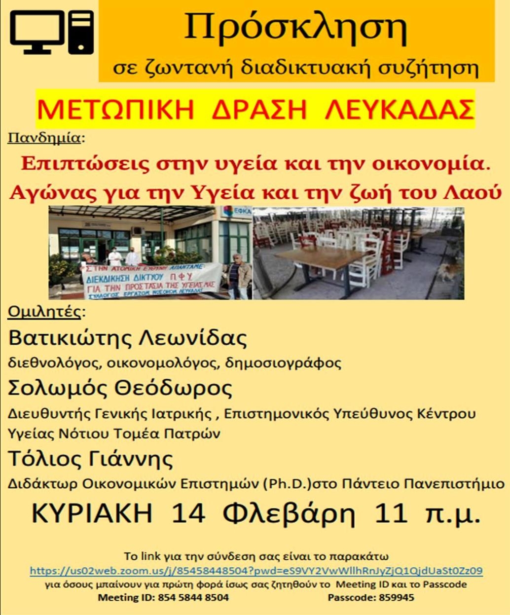 Πανδημία: Επιπτώσεις στην υγεία και την οικονομία. Αγώνας για την Υγεία και την ζωή του Λαού