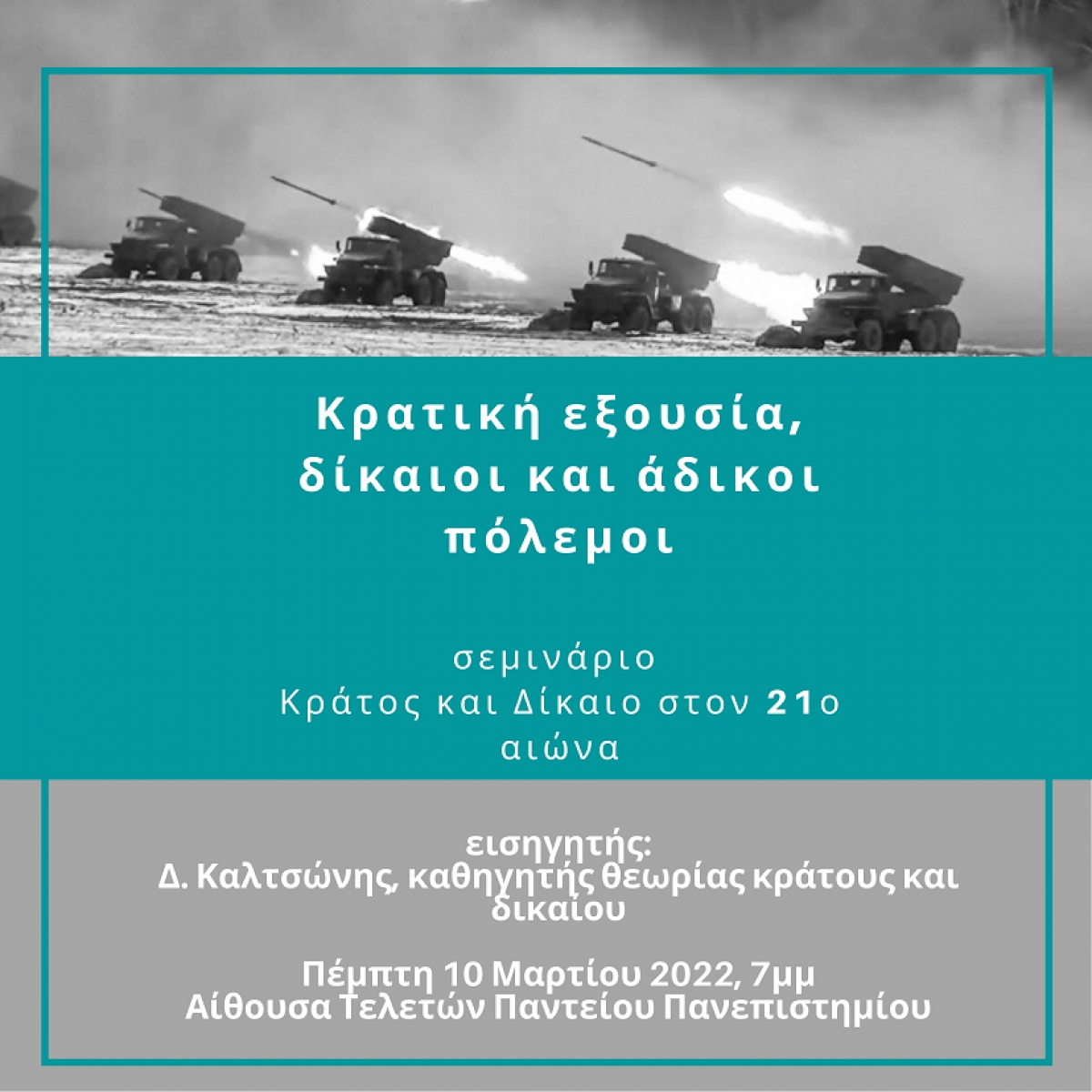 Σεμινάριο Κράτος και δίκαιο στον 21ο αιώνα, 10 Μαρτίου: «Κρατική εξουσία, δίκαιοι και άδικοι πόλεμοι»