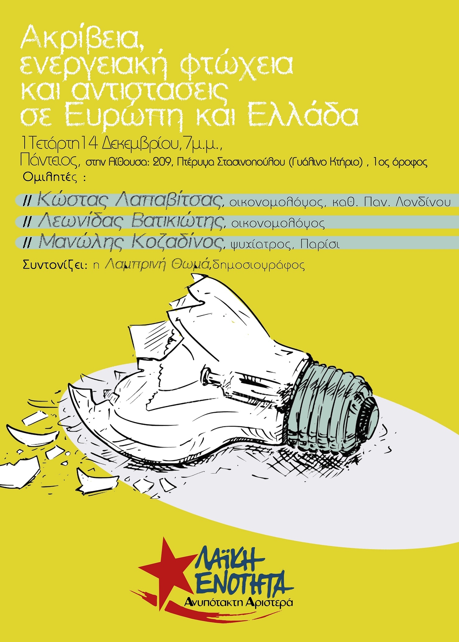 ΑΝΑΚΟΙΝΩΣΕΙΣ - ΕΚΔΗΛΩΣΕΙΣ Εκδήλωση Λαϊκής Ενότητας για την ακρίβεια, Τετάρτη 14 Δεκεμβρίου Από KOMMON - 11 Δεκεμβρίου, 2022 0 113 FacebookX