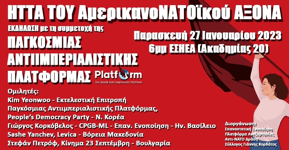 ΕΚΔΗΛΩΣΗ με τη συμμετοχή της Παγκόσμιας Αντιιμπεριαλιστικής Πλατφόρμας