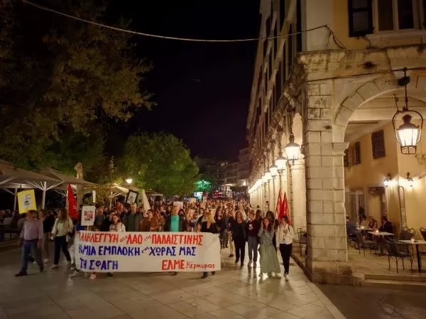 Μεγάλη συγκέντρωση και διαδήλωση στους δρόμους της Κέρκυρας με σύνθημα Λευτεριά  στην Παλαιστίνη. Την διαδήλωση διοργάνωσαν το Εργατικό Κέντρο Κέρκυρας, η ΕΛΜΕ και  το σωματείο δασκάλων. Η διαδήλωση είναι η δεύτερη στην σειρά και εκφράζεται με τον πιο κατηγορηματικό τρόπο η αλληλεγγύη των Κερκυραίων στον αγώνα του παλαιστινιακού λαού. Στην συγκέντρωση πήραν μέρος και τουρίστες με τις οικογένειες τους προερχόμενοι από αραβικές χώρες…