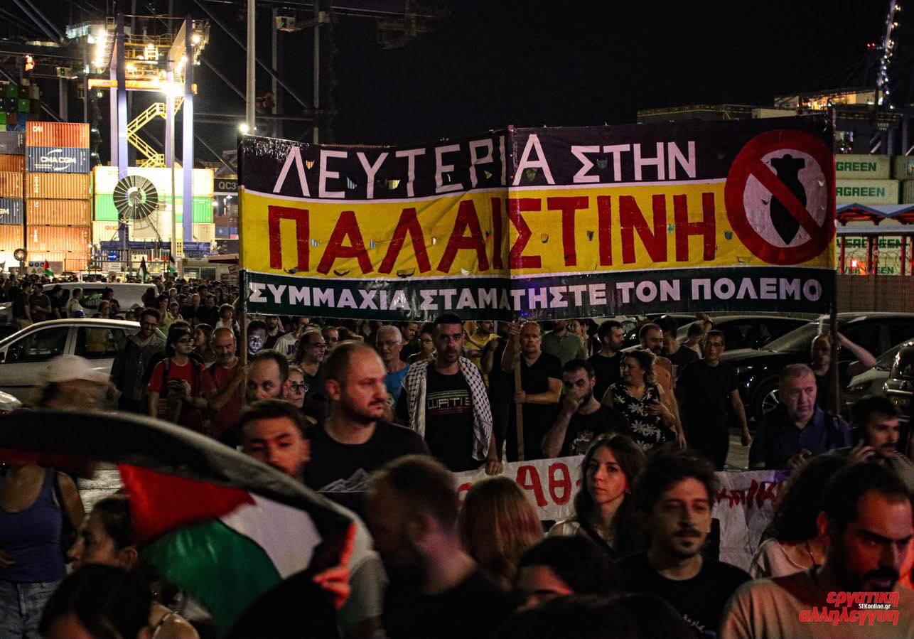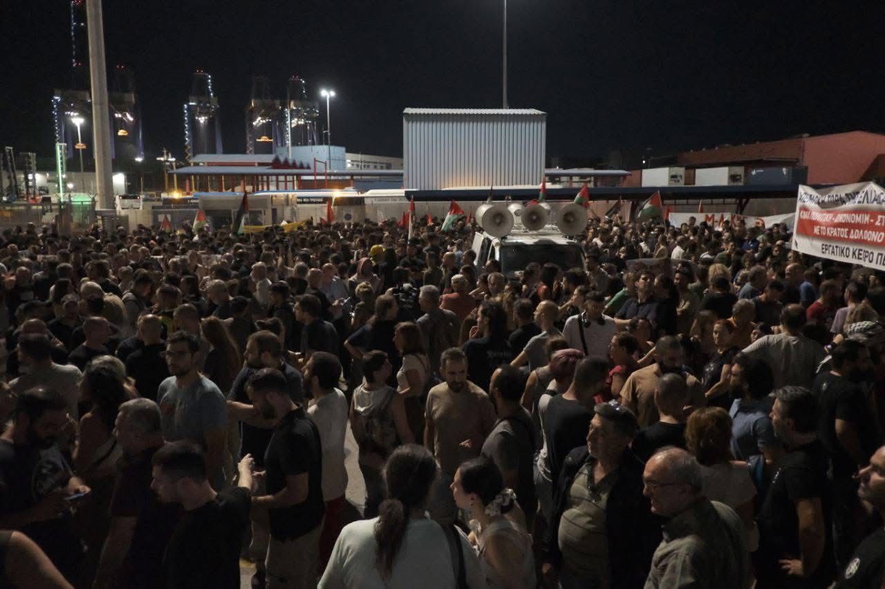 Μεγάλη μαζική και μαχητική κινητοποίηση πραγματοποιήθηκε χθες βράδυ στο λιμάνι του Πειραιά για να μην ξεφορτώσει το πλοίο «COSCO Shipping Pisces», το πολεμικό υλικό που προοριζόταν το κράτος δολοφόνο του Ισραήλ, ώστε να χρησιμοποιηθεί για να συνεχιστεί η σφαγή στη Λωρίδα της Γάζας.