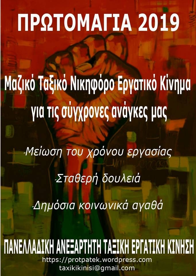 ΠΡΩΤΟΜΑΓΙΑ 2019 Τέρμα η σαπίλα των γραφειοκρατών και του εργοδοτικού συνδικαλισμού! Εμπρός για ένα μαζικό ταξικό νικηφόρο εργατικό κίνημα!