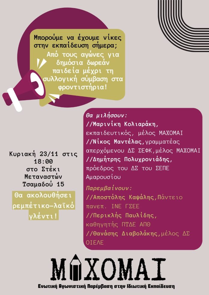 ΜΑΧΟΜΑΙ Ενωτική Αγωνιστική Παρέμβαση στην Ιδιωτική Εκπαίδευση