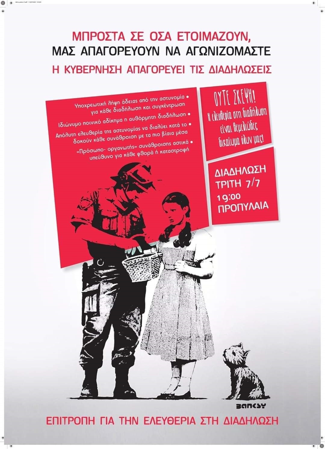 Η κυβέρνηση της ΝΔ επιχειρεί ένα αντιδραστικό χτύπημα στα δημοκρατικά δικαιώματα και τις ελευθερίες του λαού. Μέσα στο καλοκαίρι σα το κλέφτη κατέθεσε το νομοσχέδιο περί δημόσιων υπαίθριων συναθροίσεων το οποίο κομβικά: υποχρεώνει για κάθε διαδήλωση να έχεις πάρει άδεια προηγουμένως από την αστυνομία, μετατρέπει δηλαδή σε ιδιώνυμο ποινικό αδίκημα κάθε αυθόρμητη διαδήλωση. Δίνει το ελεύθερο στην αστυνομία να διαλύει βίαια όποια κινητοποίηση κρίνει. Ορίζει τον «υπεύθυνο» κάθε διαδήλωσης ο οποίος έχει την ευθύνη αποζημίωσης για οποιαδήποτε φθορά ή καταστροφή συμβεί.