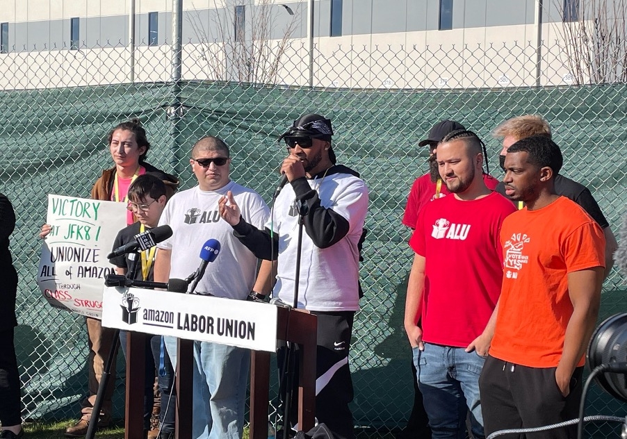 Έξω από τα γραφεία του Εθνικού Συμβουλίου Εργασιακών Σχέσεων στο Brooklyn, οι γροθιές των ηγετών του Εργατικού Συνδικάτου της Αmazon (ALU) υψώθηκαν πανηγυρικά. Η Amazon, ο δεύτερος μεγαλύτερος ιδιωτικός εργοδότης των ΗΠΑ, είδε επιτέλους την ίδρυση του πρώτου αμερικανικού συνδικάτου στα 27 χρόνια λειτουργίας της.