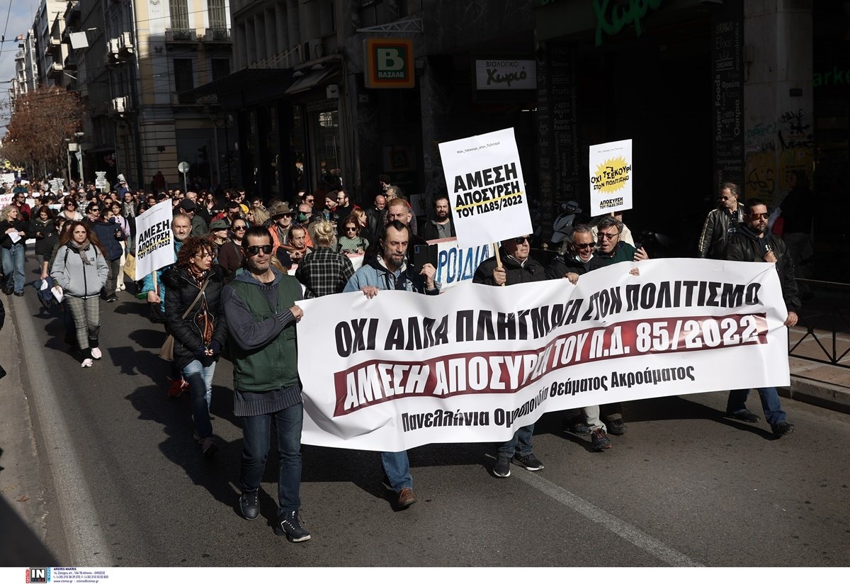 Πραγματοποιήθηκε σήμερα στο Υπουργείο Παιδείας προγραμματισμένη σύσκεψη μεταξύ του Υφυπουργού Άγγελου Συρίγου και του Γενικού Γραμματέα κ. Γιώργου Βούτσινου και των εκπροσώπων των καλλιτεχνικών σωματείων και φοιτητικών συλλόγων καλλιτεχνικών σχολών. Αυτή ήταν η τρίτη συνάντηση με εκπροσώπους της κυβέρνησης σχετικά με το φλέγον θέμα του ΠΔ 85/2022. Δυστυχώς για μία ακόμα φορά η συνάντηση δεν κατέληξε πουθενά. Ο κ. Συρίγος αρχικά επανέλαβε το επιχείρημα του κ. Γιατρομανωλάκη, ότι η αναγνώριση των σπουδών δεν θα έπρεπε να μας απασχολεί, αφού οι καλλιτέχνες προσλαμβάνονται εκτός προσοντολογίου (ΠΔ 85/2022). Επιχείρημα προδήλως ψευδές, αφού κανένας δεν μπορεί να εγγυηθεί ότι όλοι οι οργανισμοί του δημοσίου και του ευρύτερου δημοσίου τομέα που θα προσλάβουν καλλιτέχνες το ερχόμενο διάστημα, θα αγνοήσουν ένα νομοθέτημα τόσο δεσμευτικό όσο το εν λόγω Π.Δ.