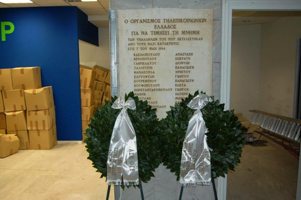 Για σκόπιμη εξαφάνιση των στεφανιών στη μνήμη των 17 εκτελεσμένων, από τους Γερμανούς Ναζί, απεργούς της τηλεφωνικής, κάνει λόγο η Αγωνιστική Συσπείρωση Εργαζομένων ΟΤΕ. Σε πρόσφατο δελτίο τύπου καταγγέλλει τη «μυστηριώδη» εξαφάνιση του δικού τους και του στεφανιού του Κινήματος Συνταξιούχων, μία ώρα μετά την κατάθεση τους, την Κυριακή 7 Μάη, στη στήλη με τα ονόματα των εκτελεσθέντων αντιφασιστών που βρίσκεται στο κτίριο του ΟΤΕ στην Κωλέττη. Το «περίεργο» έγκειται στο γεγονός πως όλα τα υπόλοιπα στεφάνια, της διοίκησης του ΟΤΕ και των ΟΜΕ-ΟΤΕ, Π.Ε.Ε-ΟΤΕ και Π.Σ.Σ-ΟΤΕ παρέμειναν άθικτα. Η κατάσταση ξέφυγε τελείως, όταν η διοίκηση του ΟΤΕ όχι απλά δεν πήρε θέση για το αν έχει κάποια σχέση με το περιστατικό, αλλά έσπευσε να καλέσει την εταιρία Security να απομακρύνει το φύλακα που είχε βάρδια εκείνη την ημέρα και συνομίλησε με τα μέλη της ΑΣΕ διαβεβαιώνοντάς τα ότι οι φύλακες δεν είχαν καμία σχέση με την απομάκρυνση.
