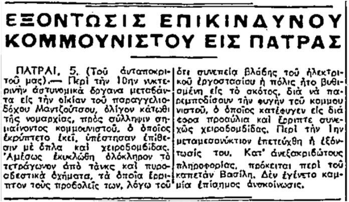 Ο αξέχαστος σύντροφός μας Κ. Χινόπωρος ή καπετάν Βασίλης της Πάτρας, έδειξε σ’ όλο τον κόσμο πώς πολεμούν και πώς πεθαίνουν οι κομμουνιστές.