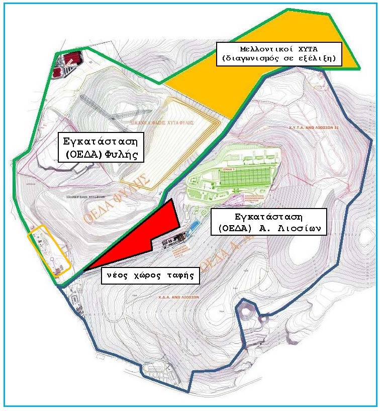 · Αλλάζουν αυθαίρετα τα όρια των εγκαταστάσεων (ΟΕΔΑ) Φυλής και Άνω Λιοσίων, με τέτοιο τρόπο, ώστε ένα τμήμα της εγκατάστασης των Άνω Λιοσίων να εμφανιστεί ως επέκταση της εγκατάστασης της Φυλής, που είναι ακόμη σε λειτουργία, για να αδειοδοτηθεί περιβαλλοντικά πιο εύκολα. «Βαφτίζουν το κρέας ψάρι» για να το καταβροχθίσουν χωρίς τύψεις.