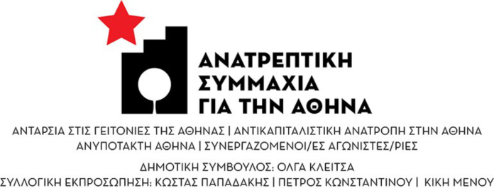 Στην ειδική συνεδρίαση πεπραγμένων του Β’ Εξαμήνου της Δημοτικής Επιτροπής η δημοτική σύμβουλος της Ανατρεπτικής Συμμαχίας για την Αθήνα, Όλγα Κλείτσα, εξέφρασε την αντίθεσή μας στην αντιδημοκρατική συγκρότηση και λειτουργία του οργάνου αυτού.
