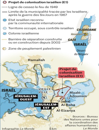 Θα είναι το πρώτο στάδιο ενός ευρύτερου σχεδίου αποίκισης της ζώνης E1,που βρίσκεται ανατολικά της Ιερουσαλήμ, δηλαδή σε κατεχόμενο παλαιστινιακό έδαφος. Με την σιωπηρή υποστήριξη του πρωθυπουργού Μπενιαμίν Νετανιάχου, το σχέδιο προωθείται από τον ακροδεξιό υπουργό Οικονομικών Μπεζαλέλ Σμοτρίτς, ηγέτη του Εθνικού Θρησκευτικού Κόμματος, Mafdal – για να μην θεωρηθεί πράξη εθνοκάθαρσης από τον ίδιο το Νετανιάχου. Το σχέδιο αυτό χρονολογείται από τη δεκαετία του 1990, επανέρχεται περιοδικά, υπό την ώθηση των πιο συντηρητικών δυνάμεων του Ισραήλ. Μέχρι τώρα, ωστόσο, οι διεθνείς πιέσειςείχαν πάντα καταφέρει να εμποδίσουν αυτή την εγκατάσταση που θα κόψει κυριολεκτικά τη Δυτική Όχθη στα δύο, στο ύψος της Ιερουσαλήμ. Πρόκειται για μια έκταση 12 τετραγωνικών χιλιομέτρων που χωρίζει την Ανατολική Ιερουσαλήμ από τον ισραηλινό οικισμό εποίκων Μααλέ Αντουμίν, ο οποίος βρίσκεται στη Δυτική Όχθη, 13 χιλιόμετρα δυτικά του Ιορδάνη. Με την κατασκευή 3.400 κατοικιών σε αυτή την περιοχή, οι ισραηλινές αρχές θέλουν να δημιουργήσουν μια γέφυρα που θα συνδέει τον οικισμό Μααλέ Αντουμίν με την Ιερουσαλήμ.