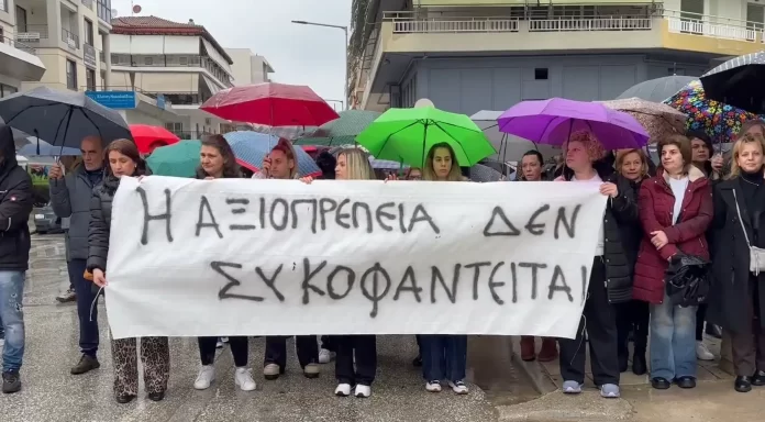 Από τη μια η εικόνα μέρους των εργαζομένων στα Τρίκαλα, στη ΒΙΟΛΑΝΤΑ των αδελφών Τζιωρτζώτη, την κατηγορουμένη ως δολοφόνο εταιρεία των πέντε εργατριών της.