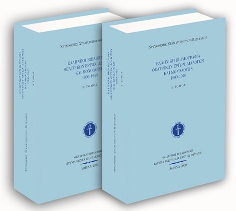 Πρόκειται για την «Ελληνική βιβλιογραφία θεατρικών έργων, διαλόγων και μονολόγων 1900-1940», Α’+Β’ τόμος, Θεατρική Βιβλιοθήκη Ίδρυμα Κώστα και Ελένης Ουράνη, Αθήνα 2020, σελ. 880+880,έργο της Ομότιμης Καθηγήτριας Χρυσοθέμιδος Σταματοπούλου-Βασιλάκου.