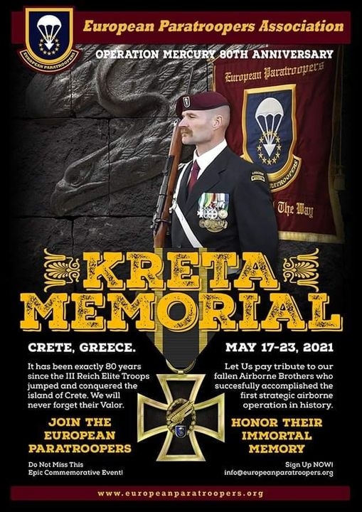 Τρίτη και 13 Απρίλη 2021 και οργή προκαλεί στην κοινή γνώμη η πρόθεση της οργάνωσης «Ένωση Ευρωπαίων Αλεξιπτωτιστών» να πραγματοποιήσει εκδήλωση τιμής για την επέτειο 80 χρόνων από την «επιχείρηση Ερμής», δηλαδή την από αέρος εισβολή των Ναζί στην Κρήτη, τον 20 Μάη του 1941.