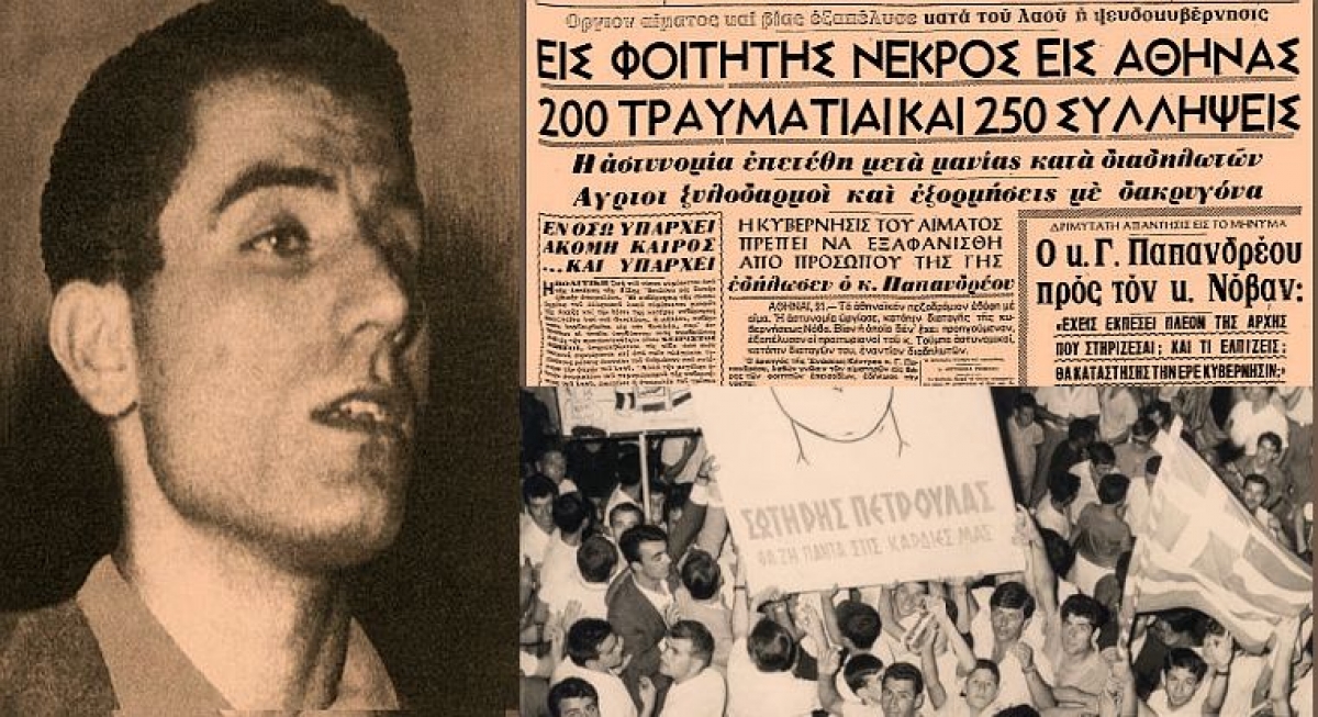 Για αυτές τις διαφορετικές του απόψεις και την επαφή του με «την κίνηση Φ.Ν.Χ καταγγελμένη σαν εχθρική από το κίνημα», το Μάρτιο του 1965 ο Σ. Πέτρουλας τιμωρείται από το Κεντρικό Συμβούλιο της Δ.Ν.Λ με την ποινή της «βαριάς μομφής». Για τον ίδιο λόγο, αλλά με το επιπλέον στοιχείο «του εγκέφαλου της διαβρωτικής δραστηριότητας σε βάρος της οργάνωσης» διαγράφεται ο Μάκης Παπούλιας μέλος του γραφείου σπουδάζουσας της Δ.Ν.Λ. Στις 21 Ιούλη του 1965 στη συμβολή των οδών Σταδίου και Εδουάρδου Λω,  ό Σωτήρης θα πέσει νεκρός από τα δολοφονικά χτυπήματα της αστυνομίας σε μια από τις μεγαλειώδεις διαδηλώσεις της περιόδου των Ιουλιανών. Το παρών στην κηδεία του στις 23 Ιούλη έδωσε  ο Γ. Παπανδρέου, η ηγεσία της ΕΔΑ και πάνω από 100 χιλ. λαού σύμφωνα με τα διεθνή πρακτορεία ειδήσεων.
