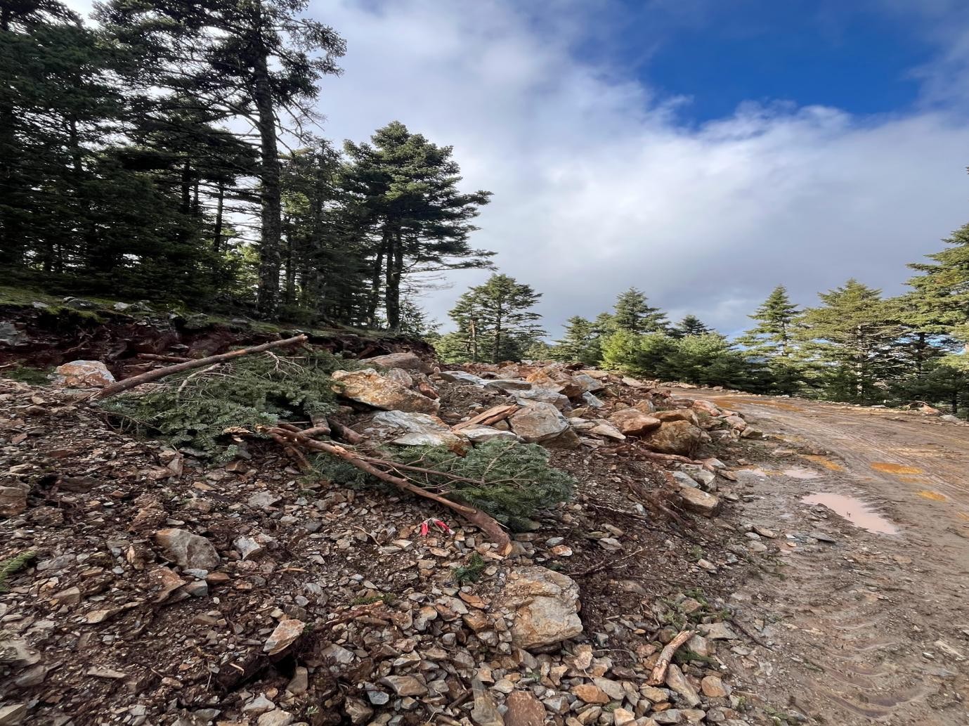 Καθόλη τη διάρκεια της διαδρομής είναι φανερή η καταστροφή που έχει συντελεστεί στο βουνό από την εταιρεία CNI Greece. Η διάνοιξη δρόμων μέσα στο παρθένο δάσος έχει οδηγήσει στη κοπή εκατοντάδων ελάτων και κέδρων.