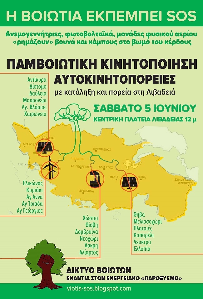 O ΛΑΟΣ ΤΗΣ ΒΟΙΩΤΙΑΣ ΑΝΤΙΣΤΕΚΕΤΑΙ σε ανεμογεννήτριες, φωτοβολταϊκά, μονάδες φυσικού αερίου που «ρημάζουν» βουνά και κάμπους στο βωμό του κέρδους