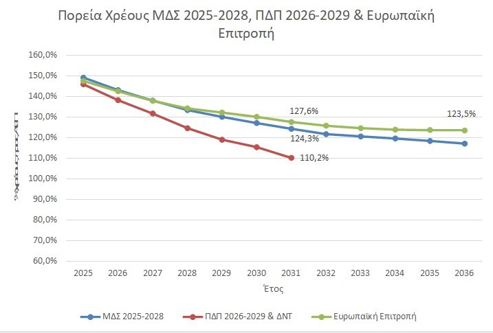 Πηγή: ΜΔΣ 2025-2028, ΠΔΠ 2026-2029, Debt Sustainability Monitor 2025.