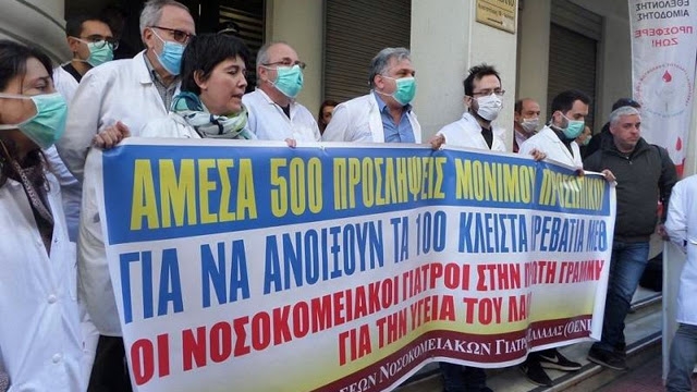 Το διαχρονικά υποβαθμισμένο σύστημα υγείας, υποτιμήθηκε περαιτέρω την προηγούμενη δεκαετία υπό τις επιταγές των μνημονίων της ΕΕ και του ΔΝΤ, κατά την οποία οι δαπάνες για την υγείας από το 6,5% του ΑΕΠ το 2009 έπεσαν στο 4,7% του συρρικνωμένου πλέον ΑΕΠ το 2018. Μπροστά στη νέα κατάσταση της πανδημίας, λοιπόν, η κυβέρνηση της ΝΔ, κάτω από το βάρος του κινήματος των υγειονομικών και της κοινωνίας αναγκάστηκε να πάρει ορισμένα μέτρα ενίσχυσης, μέτρα λειψά και προβληματικά που επ ουδενί δεν καλύπτουν τις πραγματικές τρύπες και τις ανάγκες. Χαρακτηριστικό αποτελεί το γεγονός πως ενώ παραμένουν περίπου 30 χιλιάδες κενές οργανικές θέσεις, η κυβέρνηση προχώρησε μόνο σε περίπου 2500 προσλήψεις γιατρών και νοσηλευτών, όλες με συμβάσεις ορισμένου χρόνου.