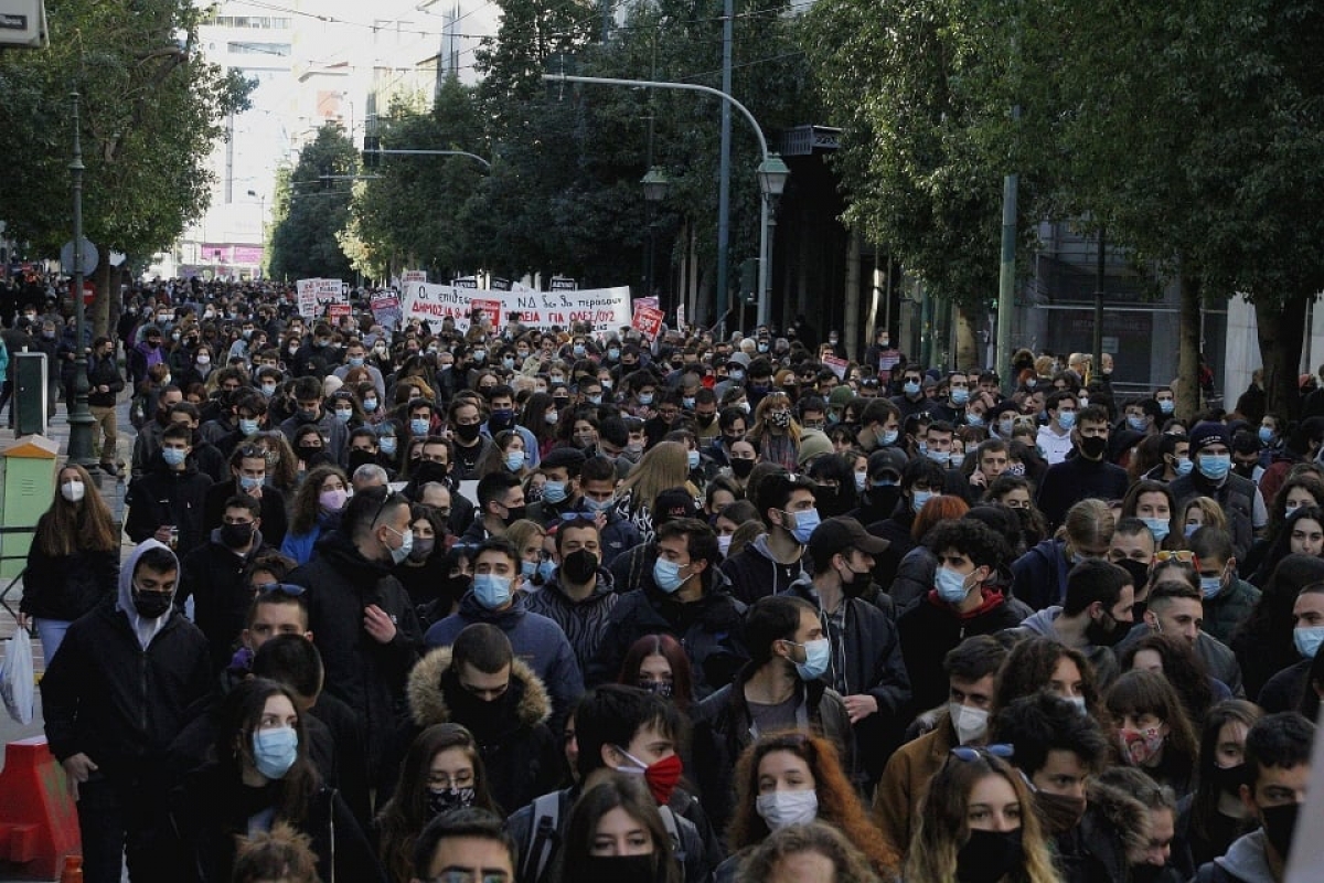Σε συνέχιση και κλιμάκωση των κινητοποιήσεων της τελευταίας εβδομάδας, με τη συμμετοχή μαζικών φορέων, φοιτητικών συλλόγων και σωματείων, χιλιάδες κόσμου έδωσαν ηχηρό παρόν , έτοιμοι-ες να υπερασπιστούν με κάθε τρόπο το δημόσιο και δωρεάν ελληνικό πανεπιστήμιο. Με μαζικά κοινά μπλοκ των φοιτητικών συλλόγων και μια ενιαία πορεία οι φοιτητές και οι φοιτήτριες, τηρώντας όλα τα αναγκαία μέτρα υγειονομικής προστασίας, έστειλαν μήνυμα στην κυβέρνηση ότι οι σχολές μας δε θα γίνουν αστυνομοκρατούμενα νεκροταφεία ιδεών.