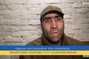 Επί δεκαπέντε λεπτά η πρόεδρος της Δημοκρατίας Κ. Σακελλαροπούλου, ο πρωθυπουργός, Κυριάκος Μητσοτάκης, ο αρχηγός της αξιωματικής αντιπολίτευσης Αλέξης Τσίπρας, οι πρεσβευτές Ουκρανίας, Κύπρου και της Γαλλίας, το ΜΕΡΑ 25 δι ενός βουλευτή, παρακολουθούσαν και στο τέλος χειροκρόταγαν το ενεργούμενο των αμερικανονατοϊκών και κύριο υπεύθυνο για τα βάσανα που περνά ο λαός της Ουκρανίας , Ζελένσκι.
