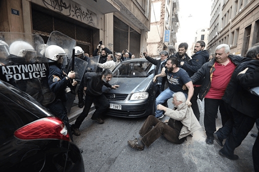 Κατά τη διάρκεια των κινητοποιήσεων ενάντια στους πλειστηριασμούς, τα δικαστήρια της χώρας γέμισαν, κατόπιν εντολής του αρμόδιου Υπουργού, από ΜΑΤ, όσοι διαμαρτυρόμασταν βρεθήκαμε αντιμέτωποι με γκλόμπς,  δακρυγόνα,  βίαιες επιθέσεις των δυνάμεων καταστολής, με συλλήψεις.