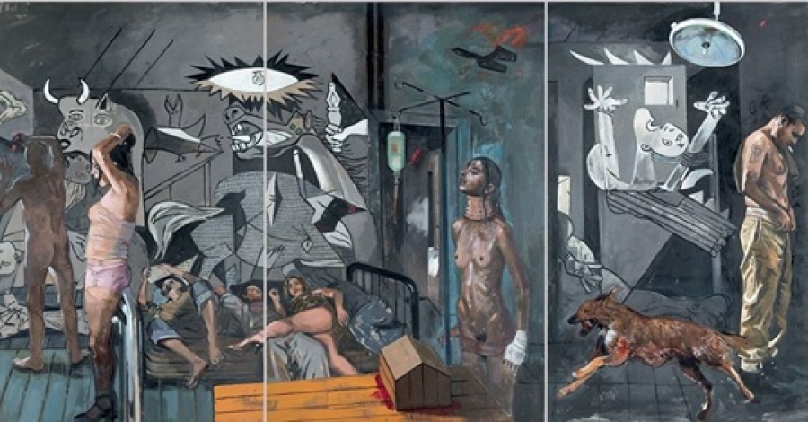 Υλοποιώντας λοιπόν τις προσδοκίες, δικές του και δικές μας, ο ζωγράφος σε αυτή την έκθεση αναζητεί την ιστορική μνήμη στη δική μας συνέχεια. “Αποδομεί” την Γκουέρνικα. Στο χρόνο που διανύθηκε τα παλιά κομμάτια, άλογα και άνθρωποι που σφαδάζουν, και κραυγάζουν, τα κομματιασμένα σώματα και αντικείμενα, έχουν συναρμολογηθεί με λάθος τρόπο δημιουργώντας εκτρώματα πραγματικότητας. Εκείνος την ξαναδομεί σε ένα καινούργιο χώρο και χρόνο, ξαναθέτει τα ερωτήματα, προσδοκώντας σε απαντήσεις που θα δοθούν από τον ίδιο και από όλους εμάς, ή μπορεί και όχι. Το θέμα μένει ανοιχτό. Δεν είναι ανάμνηση, είναι μνήμη, άρα Ιστορία, γνώση, έρευνα και αμφιβολία, οικοδόμηση…