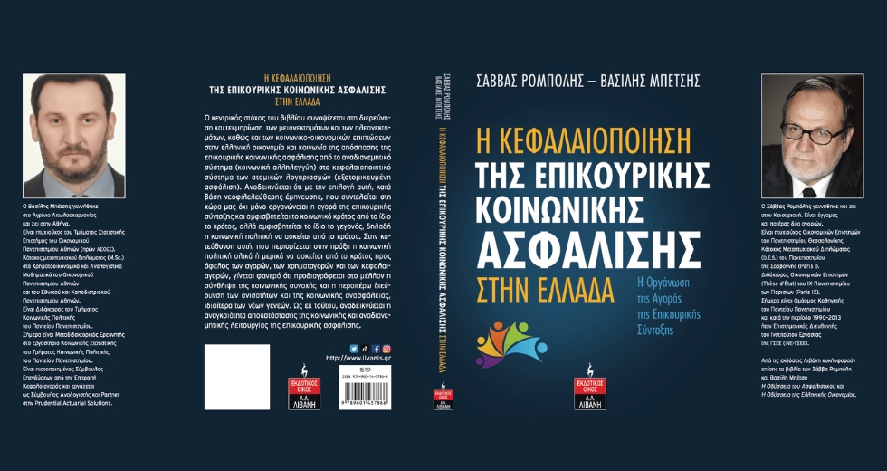Οι δύο συγγραφείς Σ. Ρομπόλης (ομότιμος καθηγητής Παντείου Πανεπιστημίου) και Β. Μπέτσης (διδάκτωρ Παντείου Πανεπιστημίου), γνωστοί ερευνητές για την πολύχρονη ενασχόληση τους με την κοινωνική ασφάλιση και πασίγνωστοι στους αναγνώστες του  SLpress, επανέρχονται με το νέο τους βιβλίο για την «Κεφαλαιοποίηση της Επικουρικής Κοινωνικής Ασφάλισης στην Ελλάδα» με τον  Ν.4826/2021 ο οποίος ουσιαστικά προβλέπει την οργάνωση της αγοράς στην επικουρική σύνταξη.